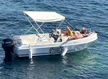 Year 2019 boat. space for 4 persons, music box, 2 snorkel masks, ice box, small + compact = easy, this is our top seller boat,15 hp motor year 2022 easy to drive, rental by Cas Catala near Port Cala nova beside Palma cruiseline port. We give a 10 min lessons and local laws briefing, location perfect to visit,Cala Major,Illetas, portals, Nova, Magaluf, Falcon, Mago. Every 10min is a place to stop and admire. 6 hours 220€ 4 hours 200€