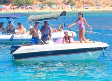 Year 2022 boat. space for 4 persons, music box, 2 snorkel masks, ice box, open style and deisgn, called open Estable due its performance in the water, even with a 15 hp motor year 2022 looks like you are captain of the sea, rental by Cas Catala near Port Cala nova beside Palma cruiseline port. We give a 10 min lessons and local laws briefing, location perfect to visit,Cala Major,Illetas, portals, Nova, Magaluf, Falcon, Mago. Every 10min is a place to stop and admire. 6 hours 250€ 4 hours 220€